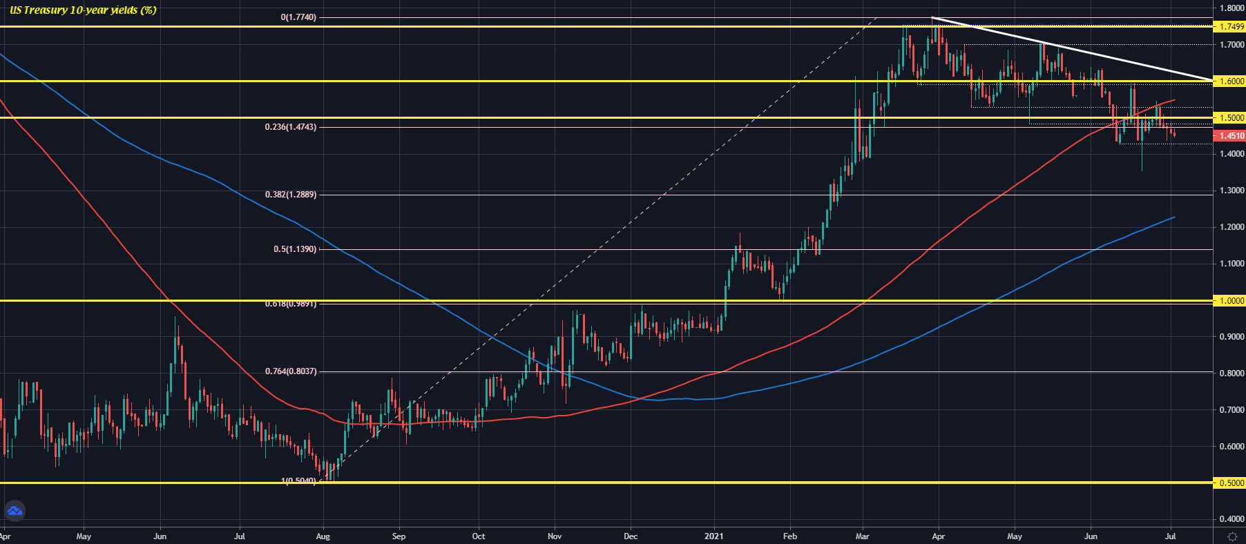 10-year Treasury yields continue to drift below 1.50% ahead of payrolls data