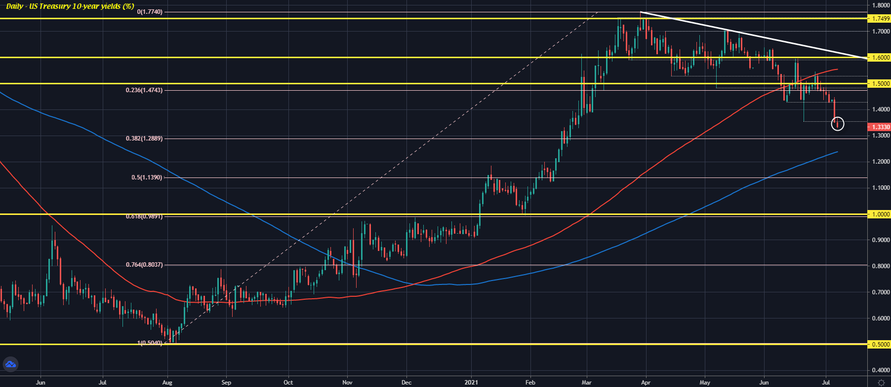 10-year Treasury yields sink further to lowest since late February