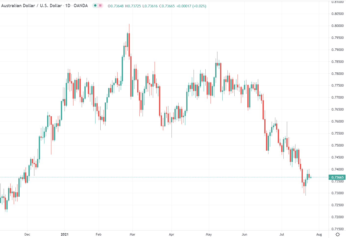 The AUD has been bungling along near its low for the year as growth forecasts are revised down and policy expectations are lower for longer: