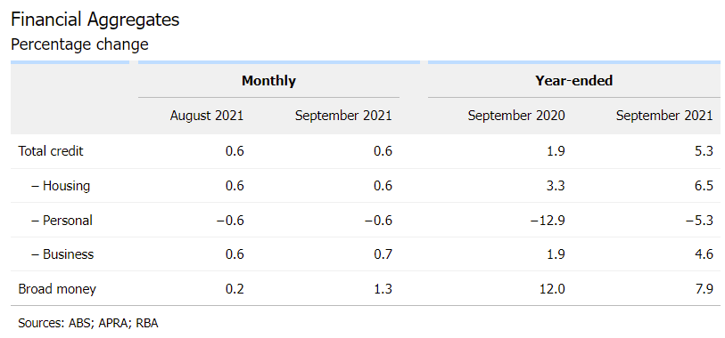 Australia Private Sector Credit for September +0.6% m/m (expected 0.6%)