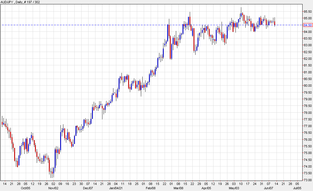Looking at the chart… is AUD/JPY taking a long pause, or topping out? Either way, the next move will be a big one.