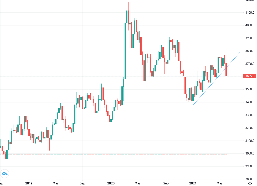 USD/COP jumped at the outset of the unrest but it’s now threatening to fall below where it was in early April. This week, the pair also cut through an uptrend that started early in 2021.