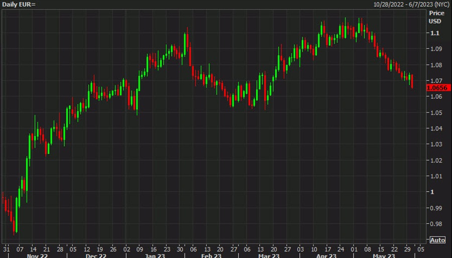 The euro is at a new session low, down 83 pips to 1.0651. The pair had attempted to find support at the early-European low of 1.0660 and bounced from there but the selling resumed in the last 20 minutes.