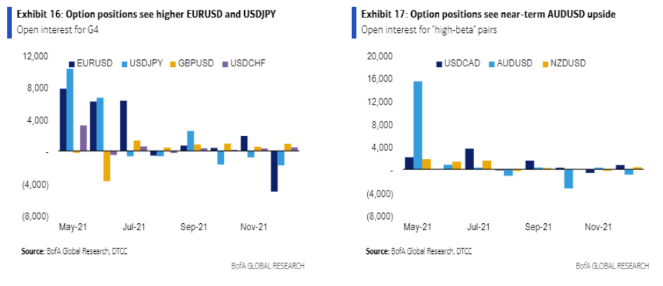 Exhibit 16). In contrast, option investors are positioned for more USDJPY and USDCHF calls than puts this month,” BofA notes.