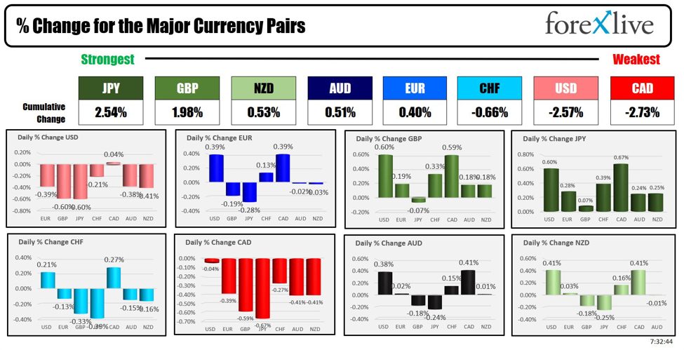 All of which helped to send the greenback lower vs all the major currencies today. At the end of the day, the USD was unchanged vs the CAD, but fell by -0.21% vs the CHF and had declines of -0.38% to -0.60% vs the other major indices (the USD fell -0.60% vs both the GBP and the JPY).