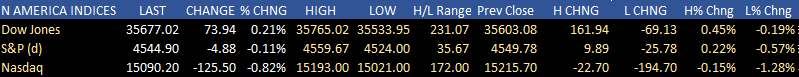 Below is a summary of the highs and lows and changes and closes for the Dow, S&P and Nasdaq today.