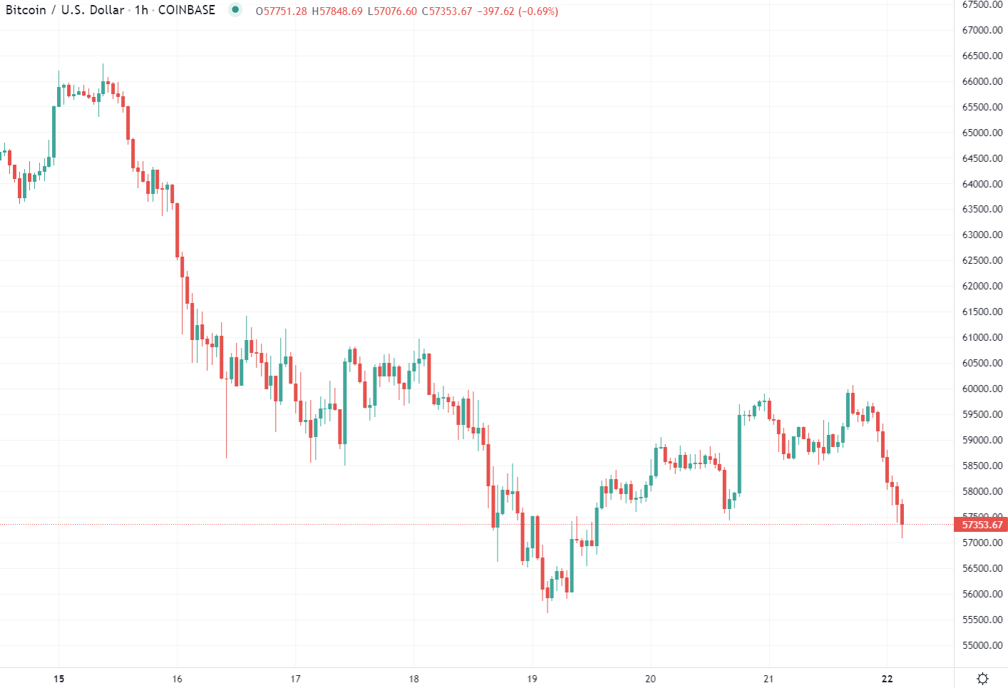 to lows approaching $57K (not quite getting that low). El Salvador’s