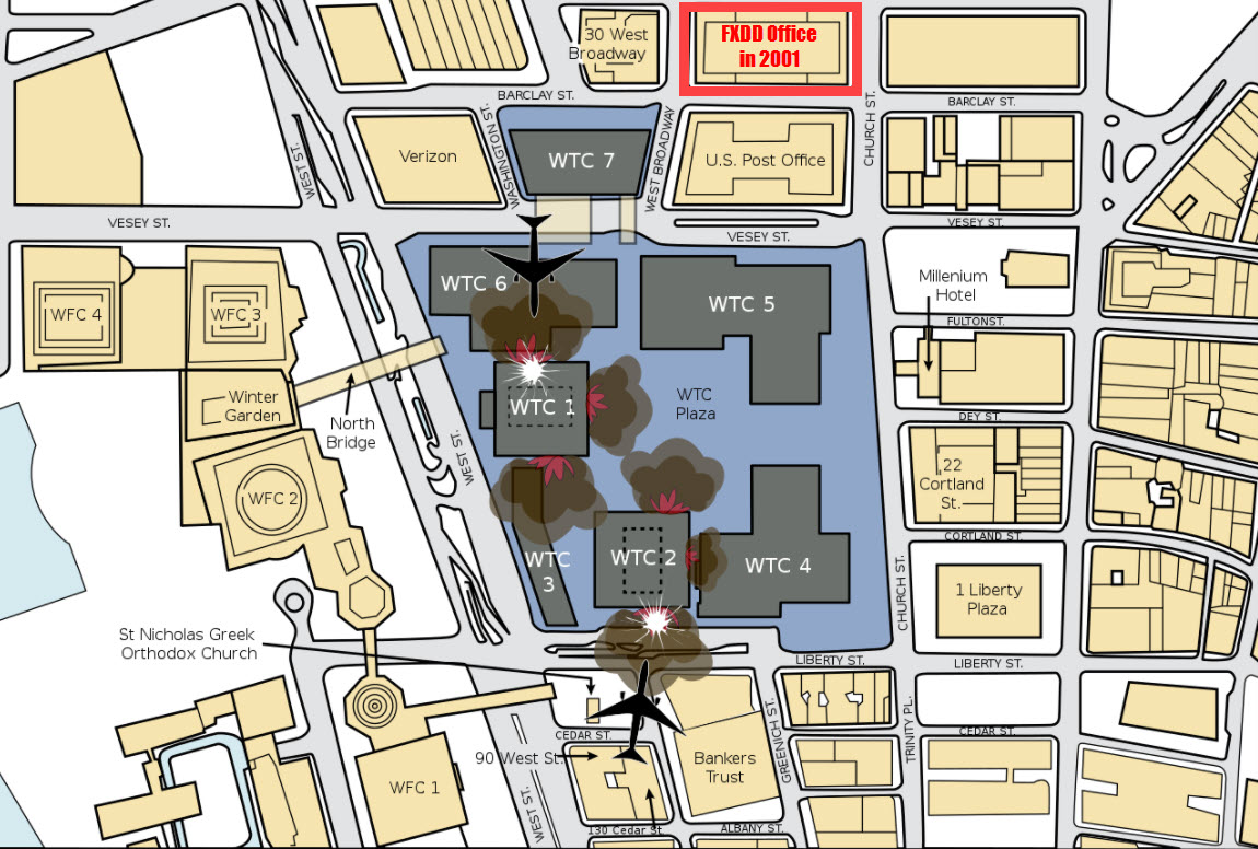 A month later I was on the phone with my colleague from FXDD.  He was in our office just north of the World Trade Center complex. At first, the initial reports were of a small plane flying into the building. There was not a lot of panic. The building falling down was not a thought. We didn’t know all the details.