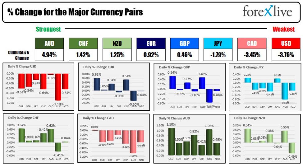 In the Forex market, the AUD is the strongest while the USD is the weakest.