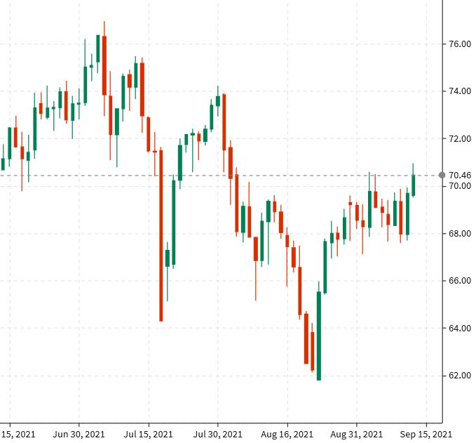WTI crude oil finished about 50-cents from the highs of the day but the settlement and intraday high were both the highest since August 2.