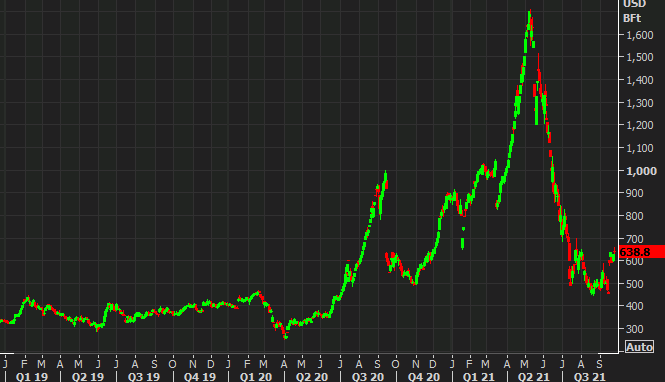 We get new home sales data at the top of the hour and that could offer some clues. Others are pointing to rebuilding demand after hurricane Ida. Random Lengths also reported that Chinese demand has been delayed as importers wait for Evergrande to clear up before restocking.