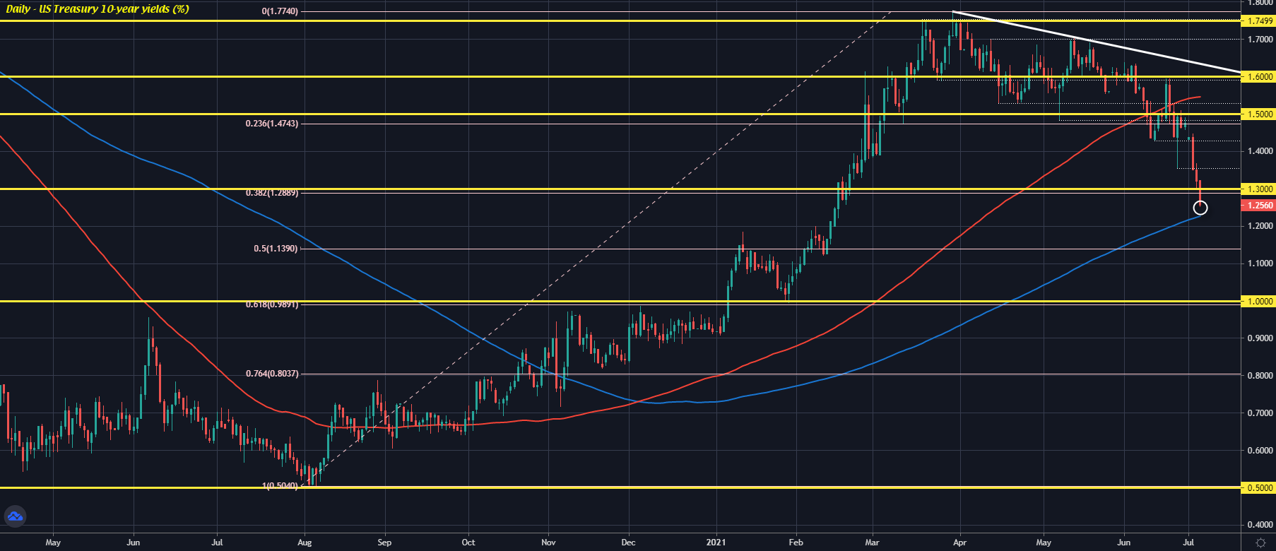 10-year Treasury yields down by nearly 7 bps today to 1.25%