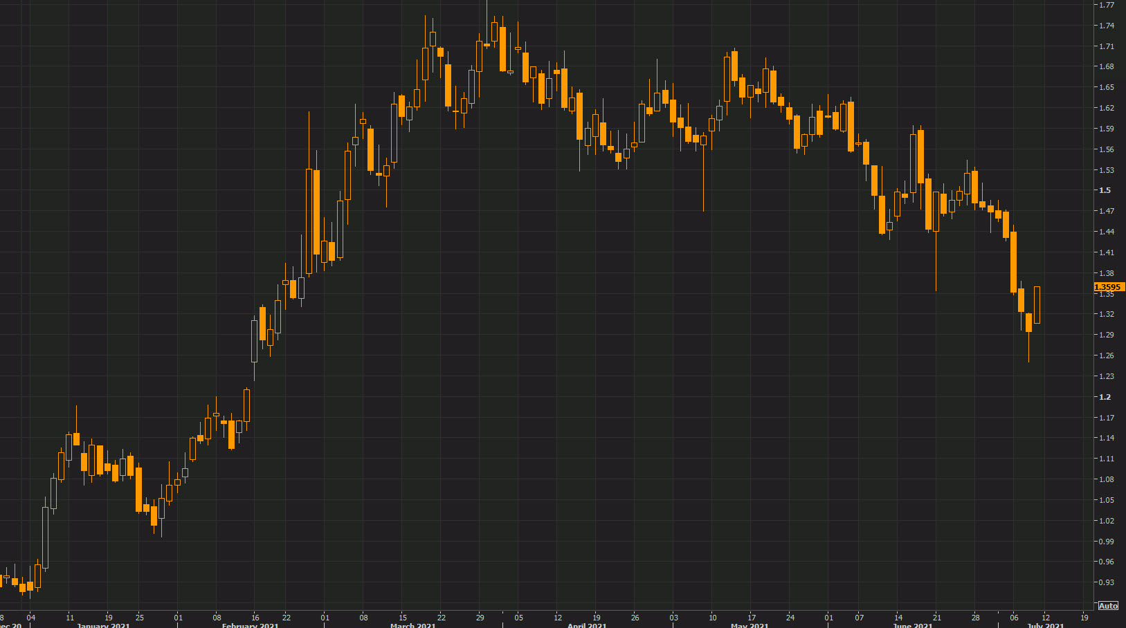 US 10-year yields are now up 7.2 bps to 1.36% today. That’s 11 bps above yesterday’s lows, which coincided with the 200-day moving average.