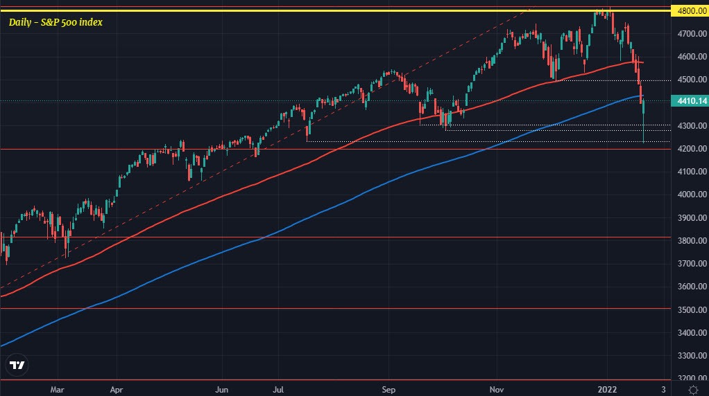 Meanwhile, the Nasdaq managed to pull up but is still keeping below 14,000 and is still some ways off from getting back to its key daily moving averages.