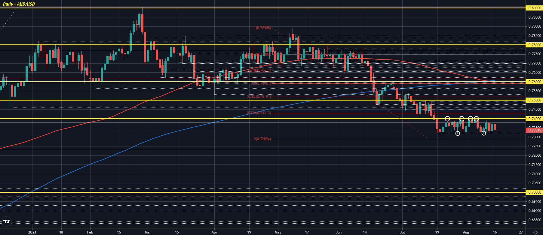 The daily chart shows that the pair is largely consolidating between 0.7300 and 0.7400 for the most part and there isn’t anything to suggest a break from that for now.