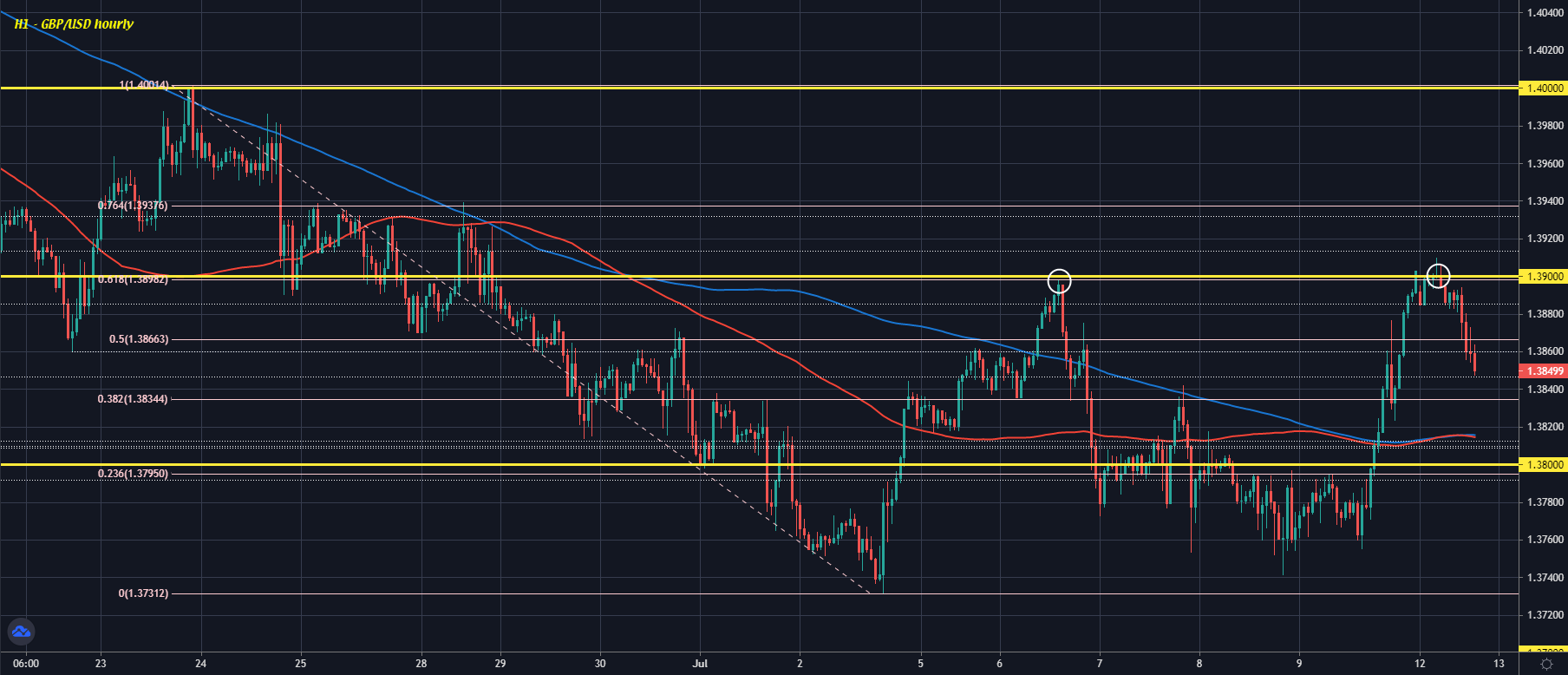 GBP/USD down 50 pips to 1.3849 currently