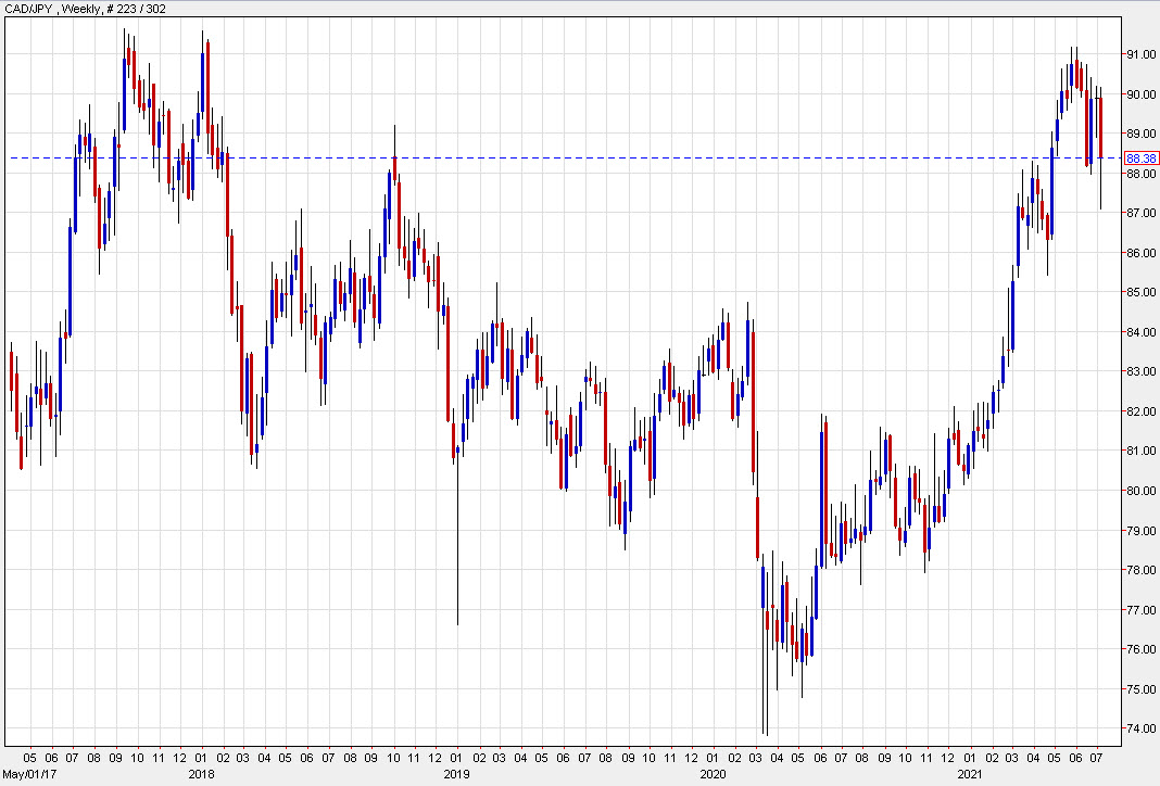 A look at the CAD/JPY weekly chart
