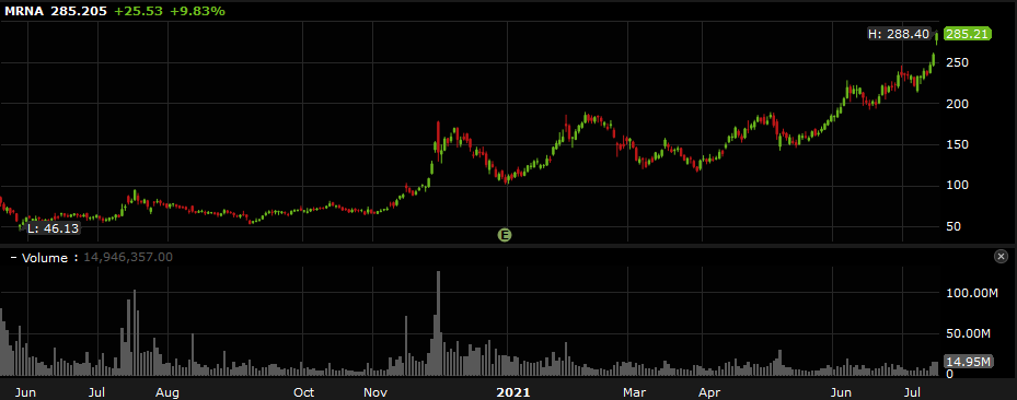 My hope is that the Moderna chart above and its recent race higher only reflects the incredible power of MRNA technology. I expect it will ultimately save many more lives than have been lost in the pandemic. I hope it doesn’t mean that other types of vaccines are rendered virtually useless by the combination of ineffectiveness, side-effects and hesitancy.