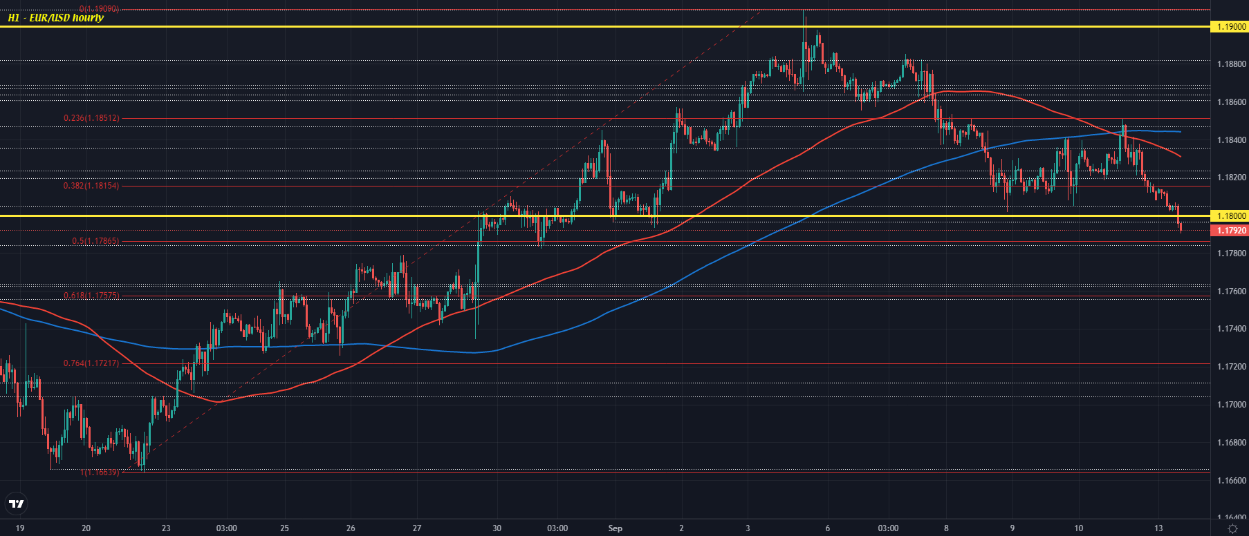 EUR/USD sees sellers keep near-term control as price action keeps below the key hourly moving averages but we’re also seeing a potential break below 1.1800 on the day.