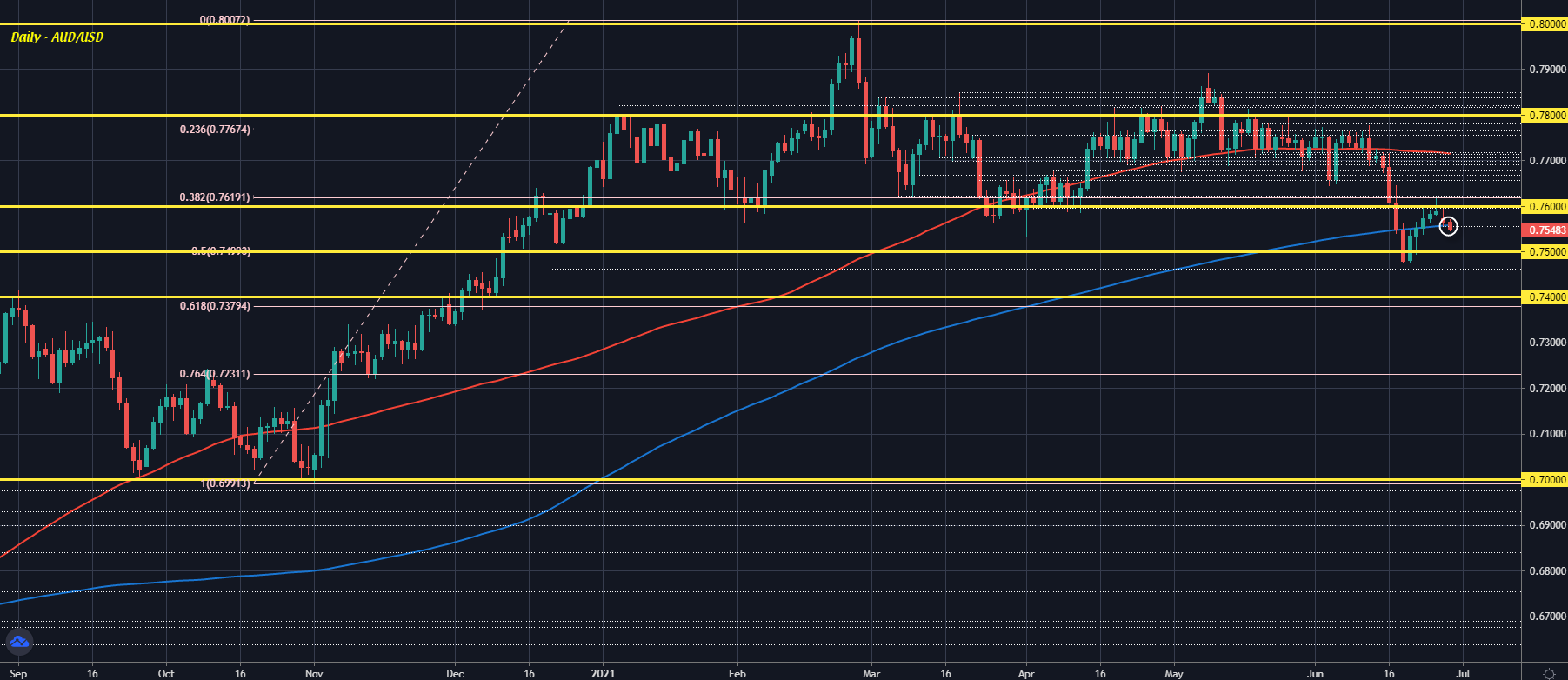 Sellers are keeping a defense of the 0.7600 level for now with downside support seen closer to the region around 0.7462-77.