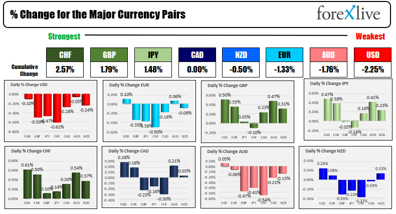 In other markets as US trading moves toward the close shows the Swiss franc is the strongest while the US dollars weakest.