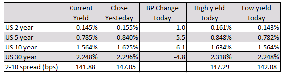In the US debt market, the yields are sharply lower with the 10 year leading the way at -6.1 basis points. The two – 10 year spread is down to 141.88 basis points which is well below the 147.05 closing level from yesterday’s trading.