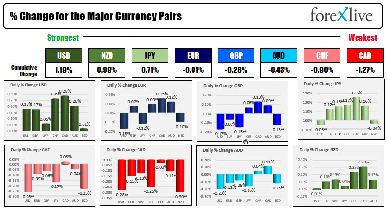 The USD moved higher in the NY morning session, but has come off the highs as well. The CAD is the weakest after keeping policy unchanged (as per expectations). The JOLTs job openings came in stronger than expectations and at another record level. The job openings have been up for seven consecutive months.