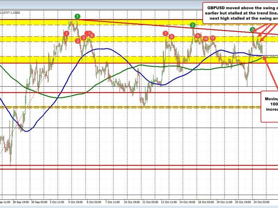 - The first in the early Asian session stalled against a downward sloping trend line on the hourly chart.