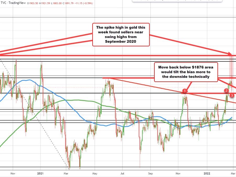 The spike high in yesterday’s trading, saw the price move up to a high of $1974.40. That took the price to the highest level since September 2020.