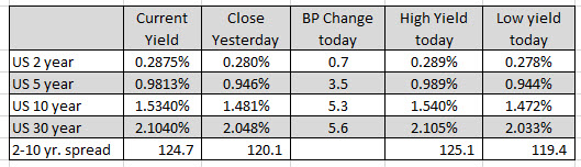 Other non-supportive fundamentals was the rise in rates today. The 10 year yield moved up 5.3 basis points and the 5 year moved back closer to 1.0% (currently at 0.9813%).