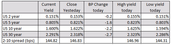 In the US debt market, yields are lower with the 30 year down -2.7 basis points.
