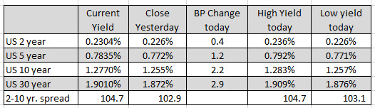 In the US debt market, the yields are higher with a modestly steeper yield curve :