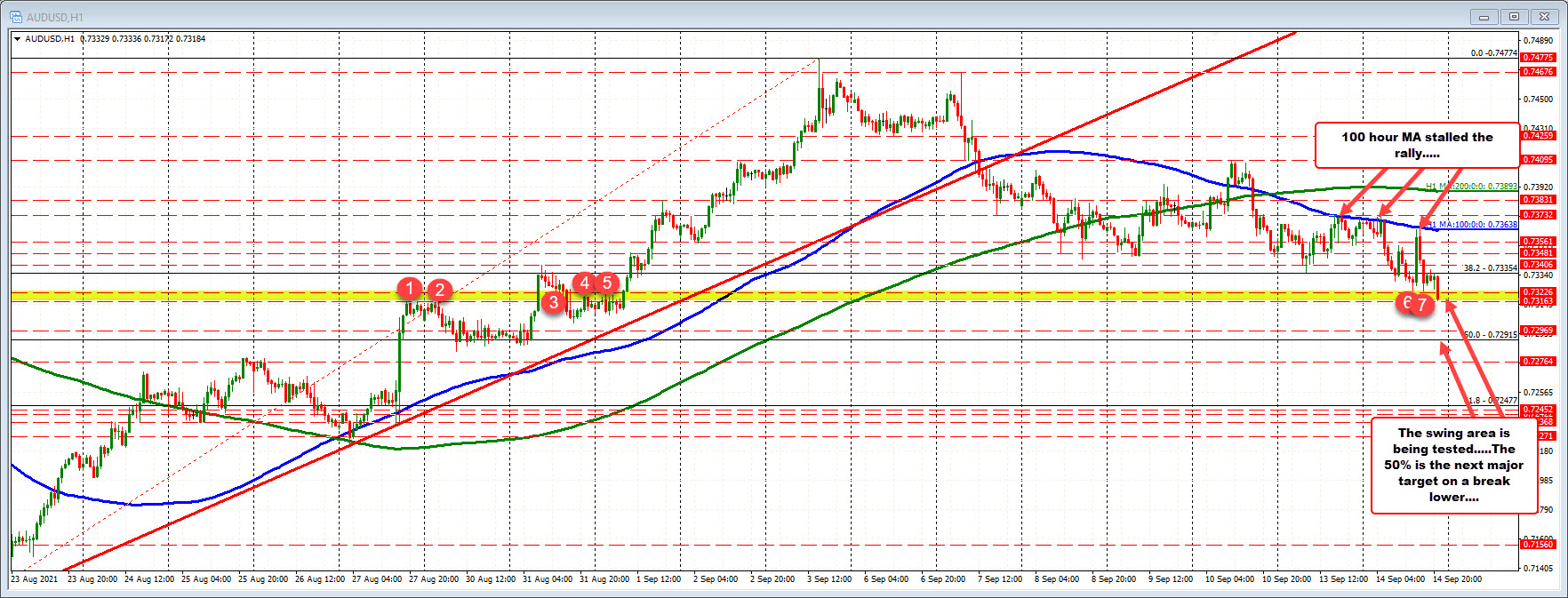 AUDUSD: The AUDUSD is trading to a new low and in the process is moving into a swing area between 0.7316 and 0.73226.  Move below, and the next major target is the 50% midpoint at 0.72915.