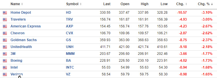 Looking at the Dow 30, Home Depot was the biggest loser falling -3.10% followed by Travelers at -3.05%.