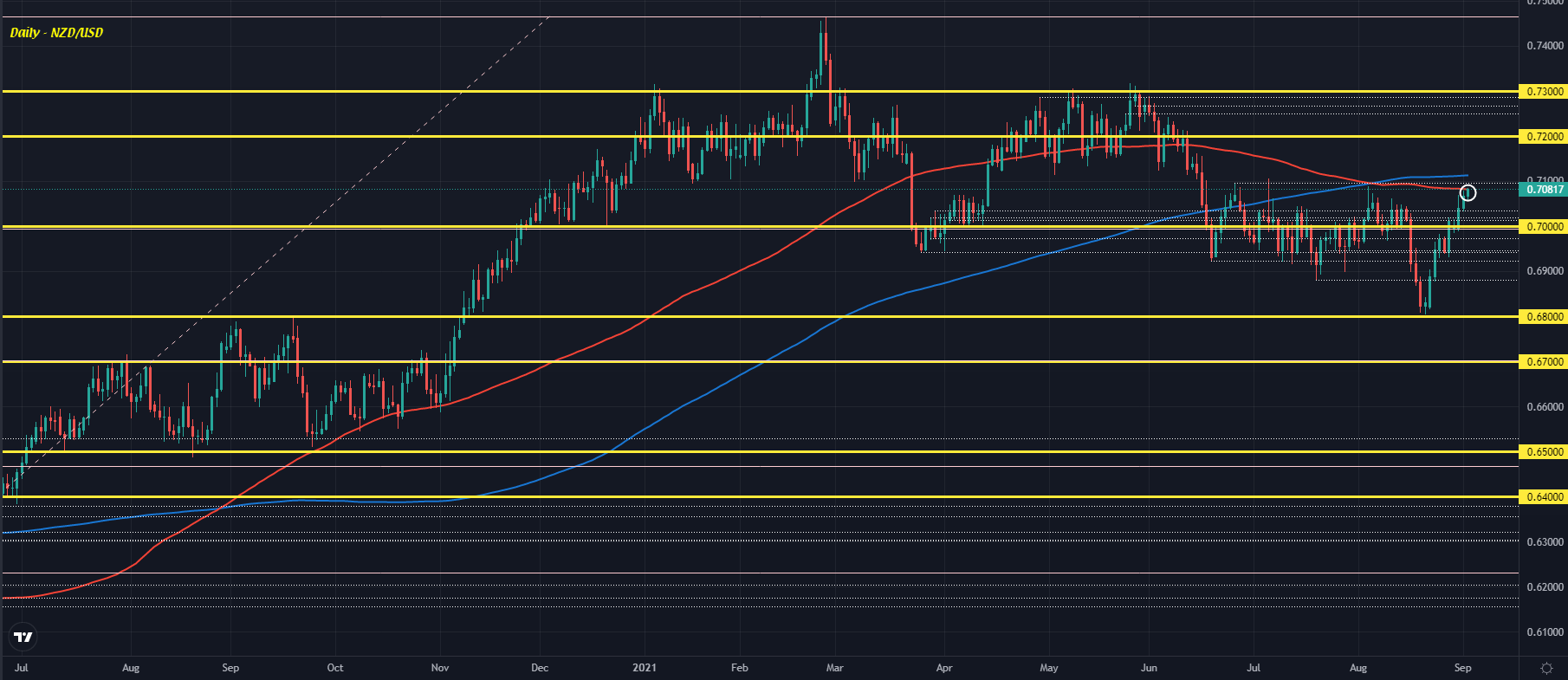 The 200-day moving average (blue line) is also seen nearby @ 0.7112 and that adds to the resistance region for buyers at the moment.