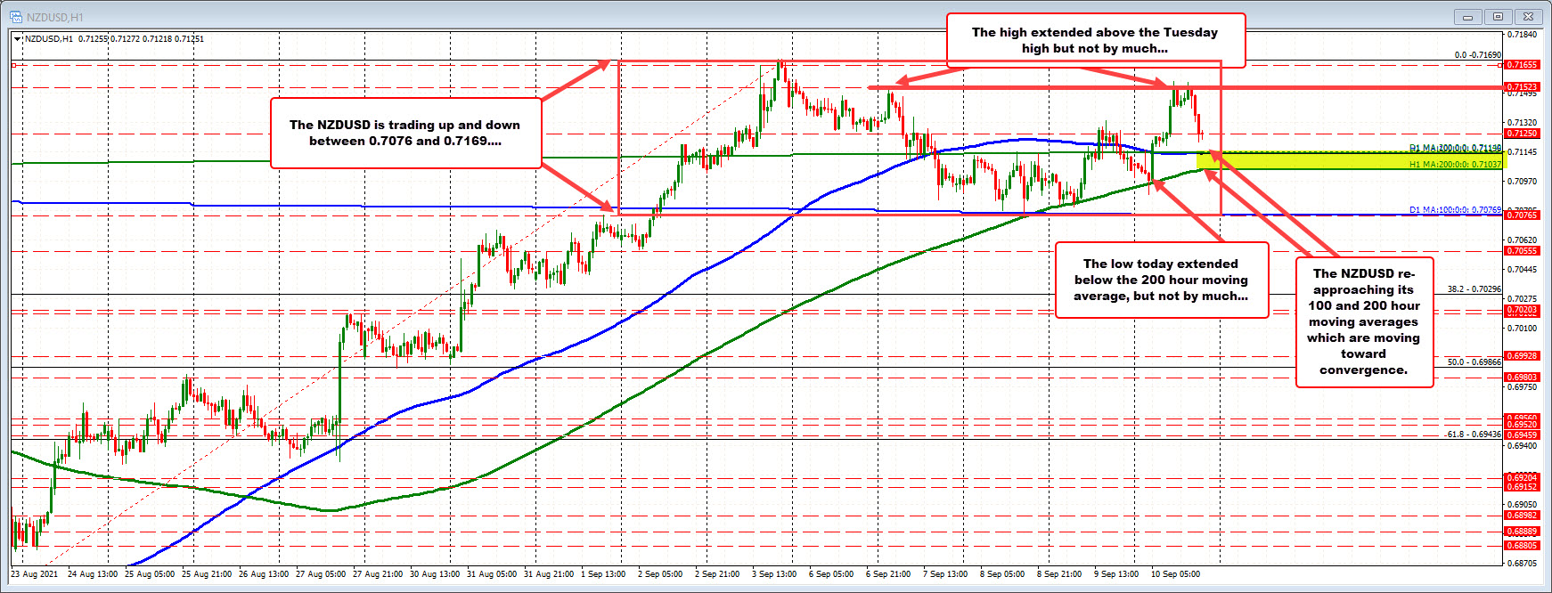 The pairs price is approaching the 100 hour moving average and 200 day moving average which are both at the 0.7114 level. Below that the 200 hour moving average comes in at 0.71037. Earlier today, the price did dip below the 200 hour moving average (in the Asian session), but selling dried up and the price quickly rebounded.
