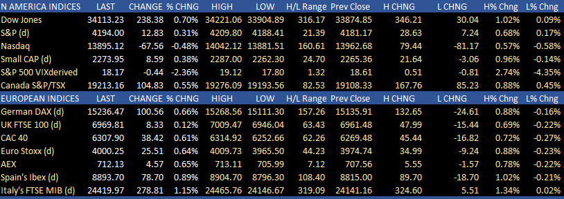 • Dow industrial average up 238.3 points or 0.7% at 34113.23