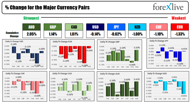 The AUD is the strongest and the EUR is the weakest as the North American session gets underway. The USD is mixed today after yesterday’s move higher which took the greenback to the highest level YTD. The EURUSD has continued its run to the downside (higher USD in the process) with move of 0.18% after yesterday’s 0.77% run took the pair to the lowest level since July 2020. The GBPUSD traded to its lowest (higher USD) level since December 2020 yesterday, but is higher today (lower USD). GDP was revised sharply higher in the UK (5.5% versus 4.8% expected). The AUDUSD moved higher today despite China manufacturing index going back below the 50 level. The US avoided a a shutdown at the end of today (until December 3rd for now), but the infrastructure bill is still unclear as the jockeying continues. US stocks are higher in premarket trading. The Nasdaq is working a 3 day losing streak after the earlier gains yesterday gave way to selling into the close. US yields are down modestly with the 10 year down -1.0 basis point. The 30 year is down -1.2 basis points after a near 2 basis point rise yesterday. It is the last day of the trading month which can lead to more volatile price action. US jobless claims and GDP will be released at the bottom of the hour. Fed’s Powell will complete his testimony on Capitol Hill. Fed’s Bostic, Harker, Evans, Bullard, Daly are all expected to speak today.
