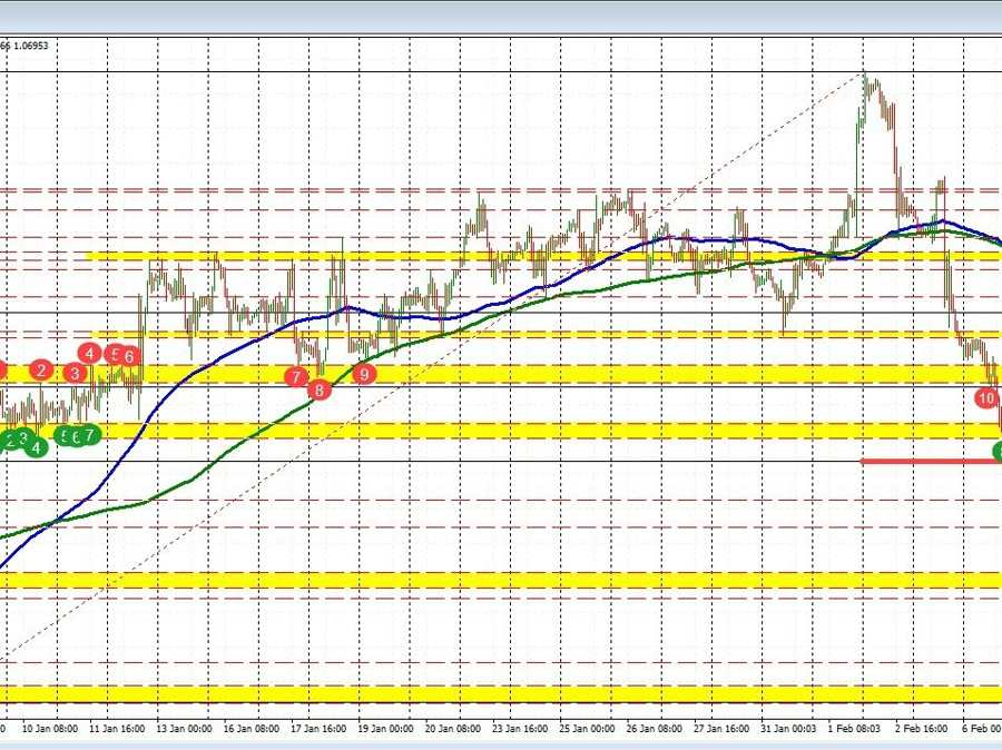 - EURUSD: The rise in the EURUSD moved back toward the 50% midpoint of the 2023 trading range at 1.075058, and the swing area between 1.0760 and 1.0775. The high price reached 1.07659 and started to run back to the downside. The current price is trading at 1.0690 back near the 61.8% retracement of the same 2023 trading range. The price is also below the swing area between 1.0711 and 1.07243.