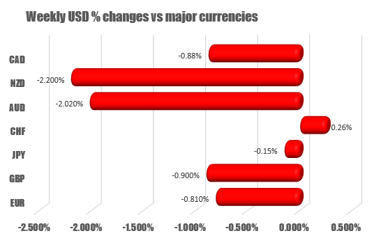 The USD fell versus all the major currencies is weeks with the exception of one…the CHF.