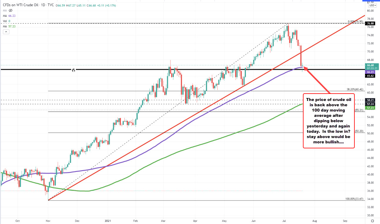The current rebounded price is trading at $66.72, back above the key MA level. Stay above and the tilt would shift more toward the buyers after the sharp fall from the July high near $77