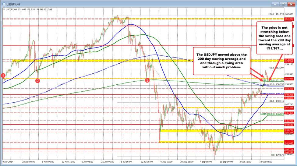 Technically, going into the comments, the USDJPY is trading to a new session low at 151.548. In the process, the price also stretched toward its 200-day moving average and 151.387.
