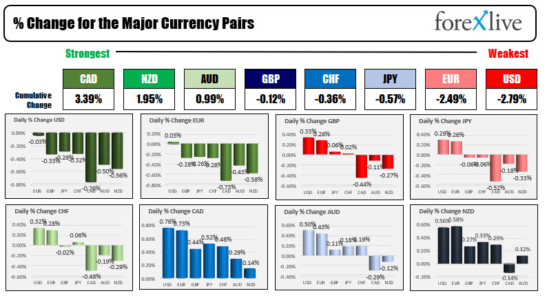 The USD is now the weakest of the major currencies.  The CAD remains the strongest.