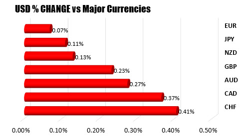 The USD has seen a dip from the day’s highest levels but still remains the strongest of the majors.