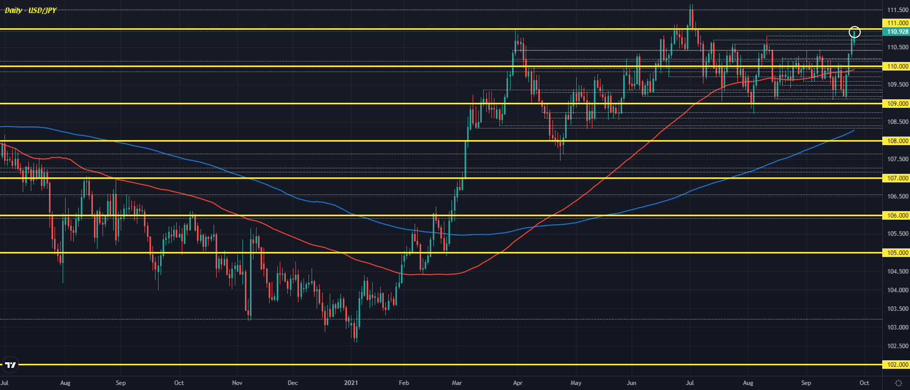 With 10-year yields potentially looking towards 1.60% or 1.70%, a push to retest the year’s highs for USD/JPY around 111.64-66 may just be the start before contesting the 2020 highs closer to 112.00.