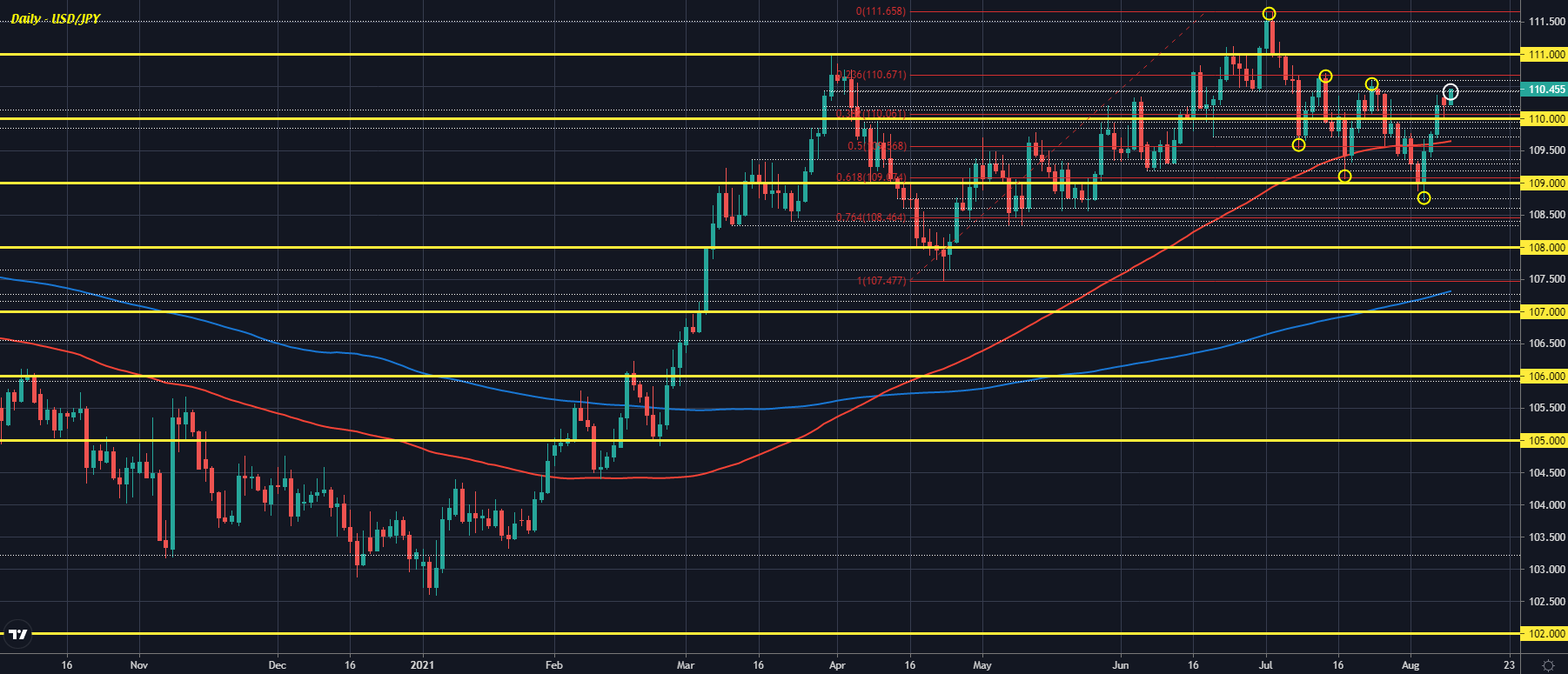 The pair is up slightly on the day to 110.45 currently, as 10-year Treasury yields hold its ground at around 1.315% to get European trading underway.