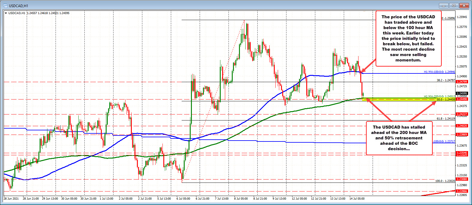 The 200 hour MA stalls the fall. BOC decision at 10 AM