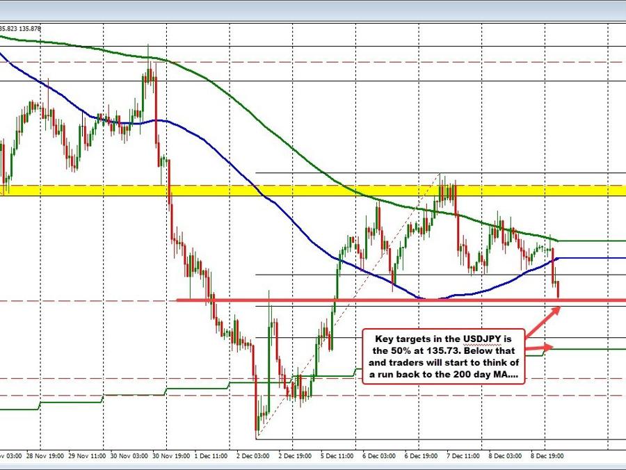 The USDJPY is continuing the move to the downside. The pair reached a new low of 135.86. The price is down -0.50% and the biggest mover vs the USD in the early hours of trading.